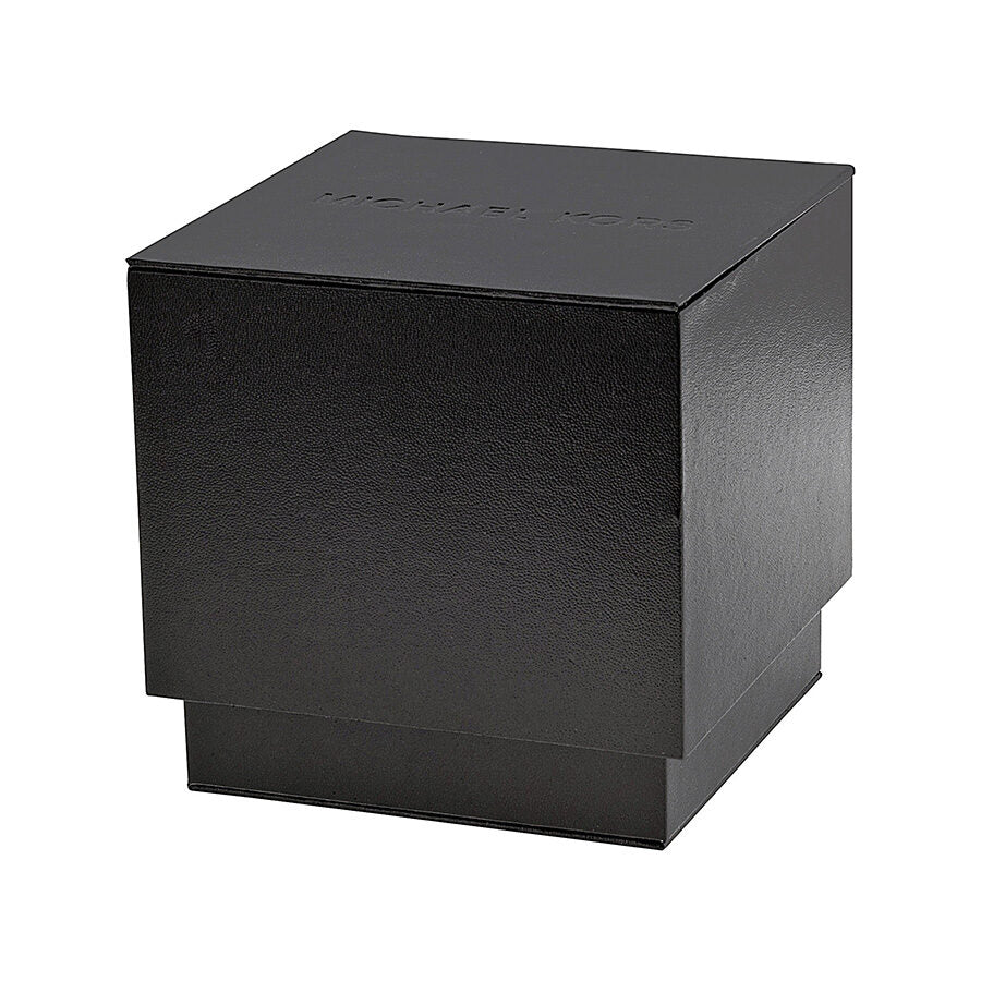 Gold-tone stainless steel case and bracelet. Fixed gold-tone bezel. Blue dial with gold-tone hands and alternating Roman numeral and index hour markers. Minute markers around the outer rim. Dial Type: Analog. Luminescent hands and markers. Date display at the 6 o'clock position. Chronograph - three sub-dials displaying: 60 second, 60 minute and 24 hour. Quartz movement. Scratch resistant mineral crystal. Pull / push crown. Solid case back. Case diameter: 38 mm. Case thickness: 10 mm. Round case shape. Band width: 20 mm. Deployment clasp. Water resistant at 50 meters / 165 feet. Functions: chronograph, tachymeter, date, hour, minute, second. Casual watch style. Michael Kors Lexington Chronograph Blue Dial Gold-tone Ladies Watch MK6206.